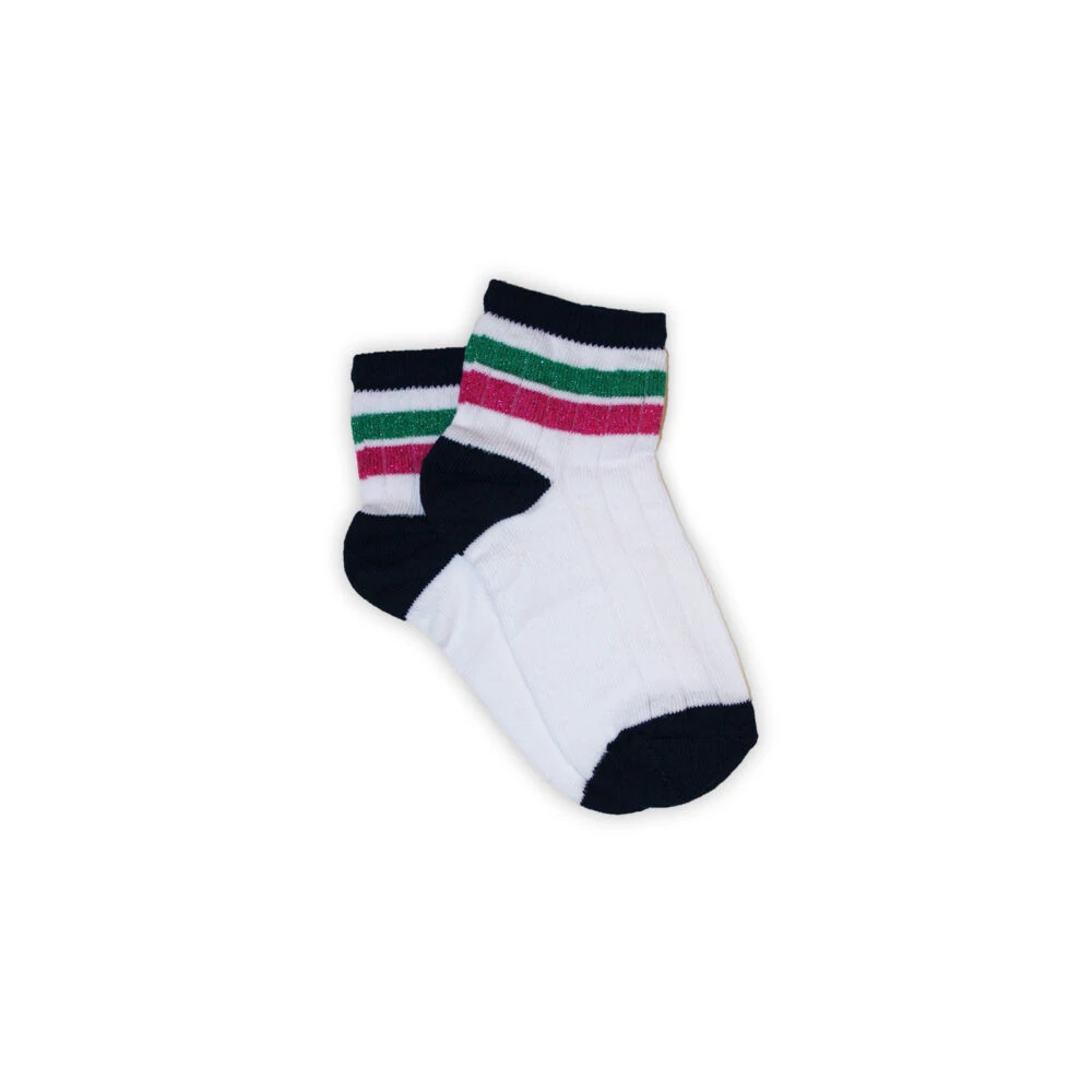 Lány pamut bokazokni - bordázott - csillámos - zöld-pink csíkos - 23-28