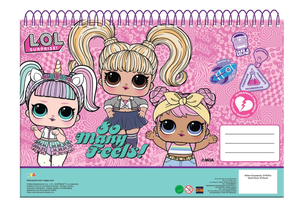LOL Surprise spirál vázlatfüzet, 30 lapos