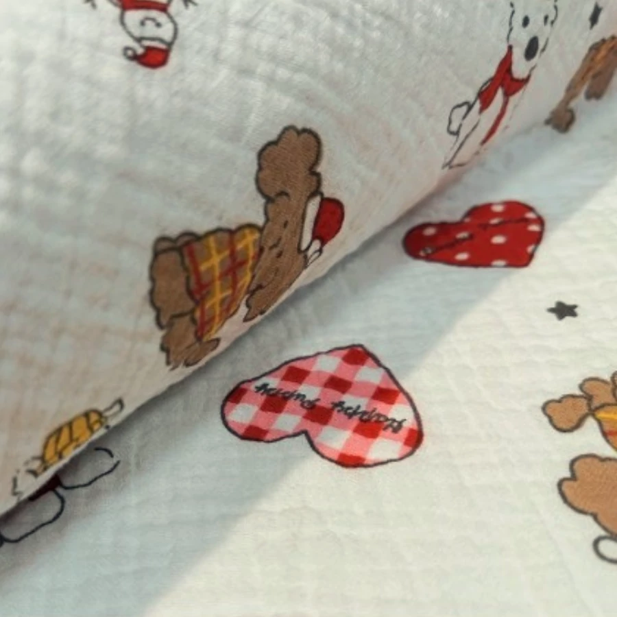 Mintás dupla géz, kutya és szív