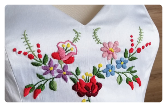 A méretre készültek mellett , nem titok, hogy a nagy szerelem a népviselet, a hímzéssel díszített tradicionális ruhák.