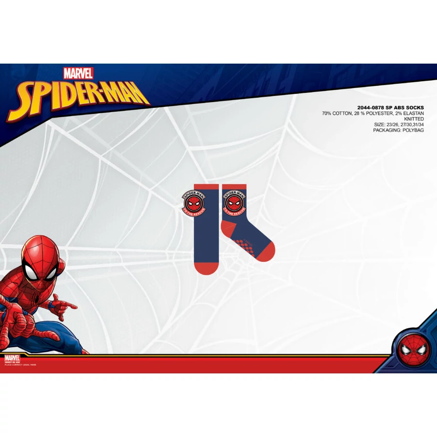 Pókember csúszásgátlós teliplüss bokazokni gyerekeknek - sötétkék-piros - 31-34
