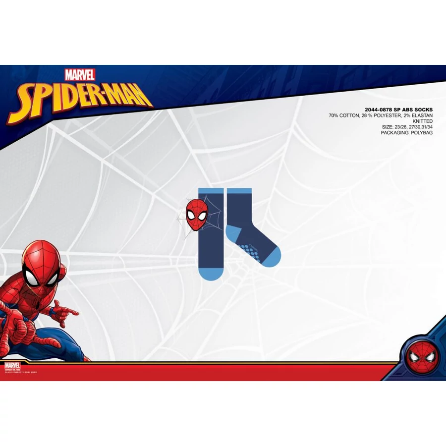 Pókember csúszásgátlós teliplüss bokazokni gyerekeknek - sötétkék-világoskék-piros - 31-34