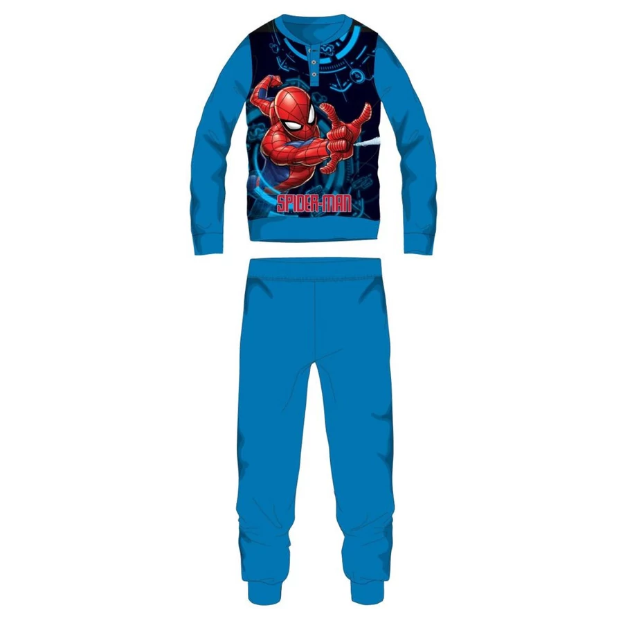 Pókember különösen puha és meleg téli pizsama kisfiúknak. Gombos nyakkialakítással, gumírozott derékrésszel, egyenes, szűkített szárral. A puhán bolyhozott belső oldal optimális hőszigetelésről gondoskodik.