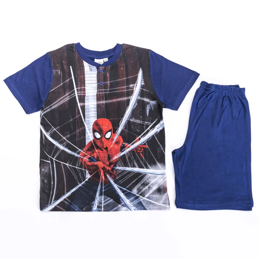 Pókember nyári pizsama kisfiúknak 100% pamut alapanyagból. Kényelmes, bőrbarát viselet. Nyári együttesként is használható.