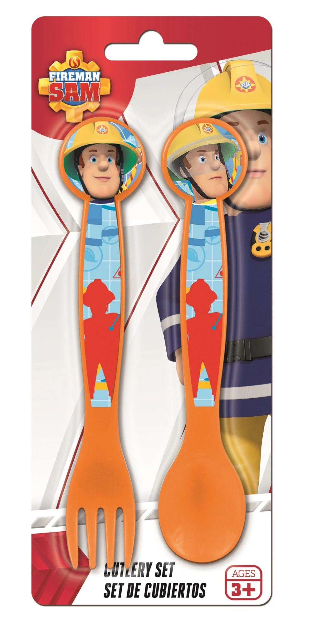 Műanyag kanál és villa Fireman Sam, Sam a tűzoltó mintával.