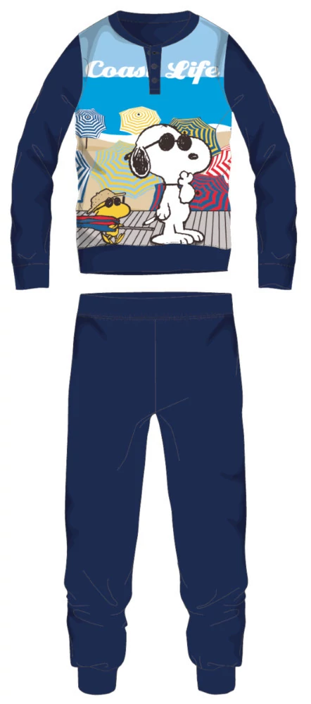 Snoopy hosszú vékony pamut gyerek pizsama - jersey pizsama - sötétkék - 110