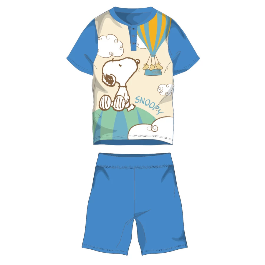 Snoopy rövid ujjú nyári pamut pizsama - gyerek jersey pizsama - világoskék - 104