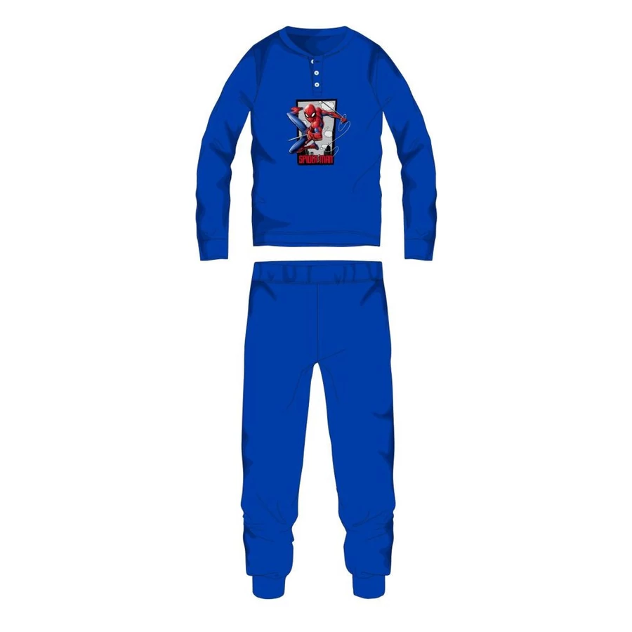Pókember téli interlock pizsama gyerekeknek 100% pamut alapanyagból. Kényelmes bőrbarát viselet. Gombos nyakkialakítással, gumírozott derékrésszel, egyenes, szűkített szárral, Pókember mintával. Díszdobozban szállítjuk.
