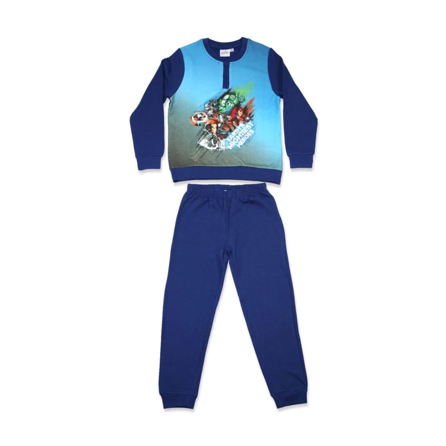 Bosszúállók kisfiú hosszú ujjú téli pizsama 100% pamut alapanyagból. Kényelmes, meleg, bőrbarát viselet.