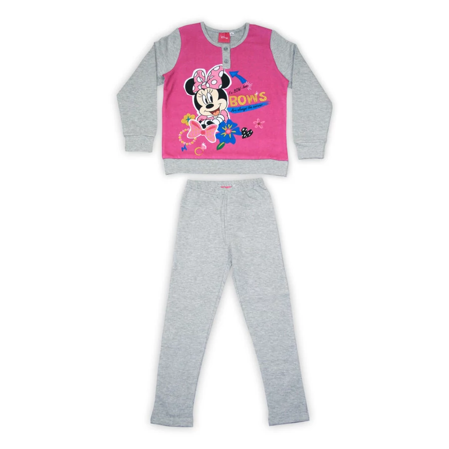 Minnie egér kislány hosszú ujjú téli pizsama 100% pamut alapanyagból. Kényelmes, meleg, bőrbarát viselet.