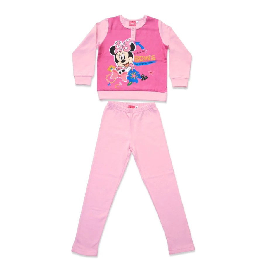 Minnie egér kislány hosszú ujjú téli pizsama 100% pamut alapanyagból. Kényelmes, meleg, bőrbarát viselet.