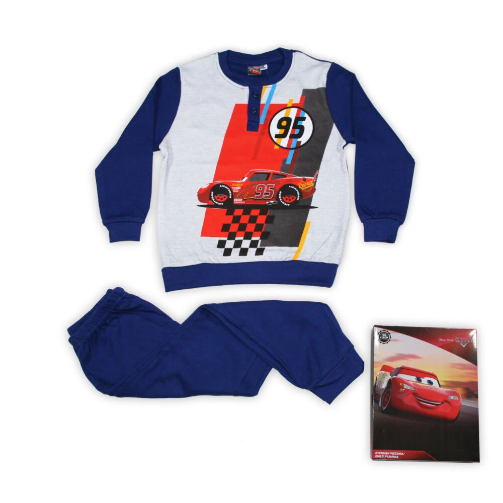 Verdák téli pizsama kisfiúknak 100% pamut alapanyagból. Kényelmes bőrbarát viselet. Gombos nyakkialakítással és gumírozott derékrésszel, egyenes, szűkített szárral sötétkék színben, Verdák mintával. Díszdobozban szállítjuk.