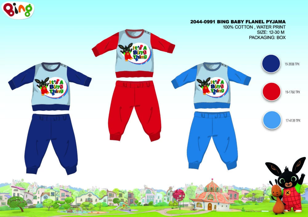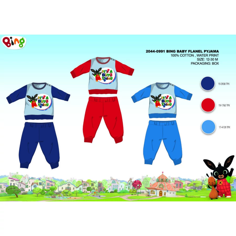 Bing nyuszi baba flanel pizsama 100% pamut alapanyagból. Kényelmes, bőrbarát viselet. Belül pihe-puha bolyhos felületű. Díszdobozban szállítjuk.