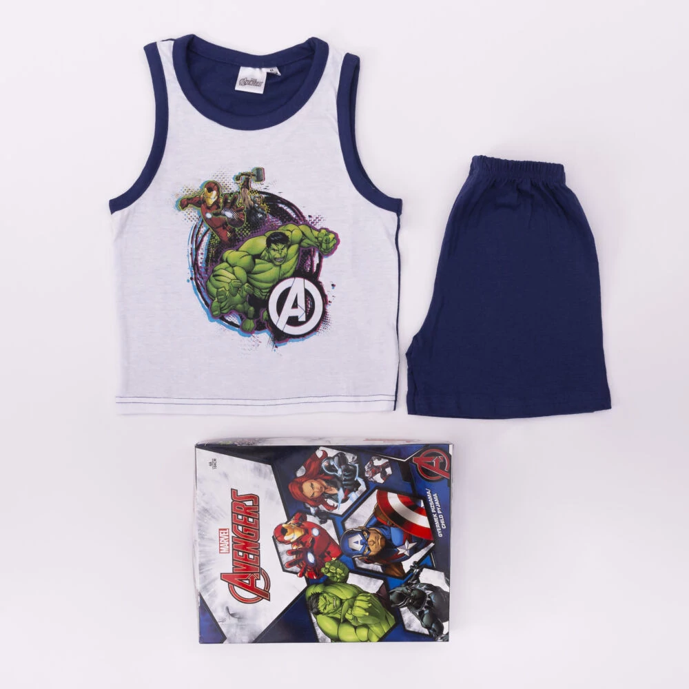 Bosszúállók nyári pizsama kisfiúknak 100% pamut alapanyagból. Kényelmes, bőrbarát viselet. Nyári együttesként is használható.