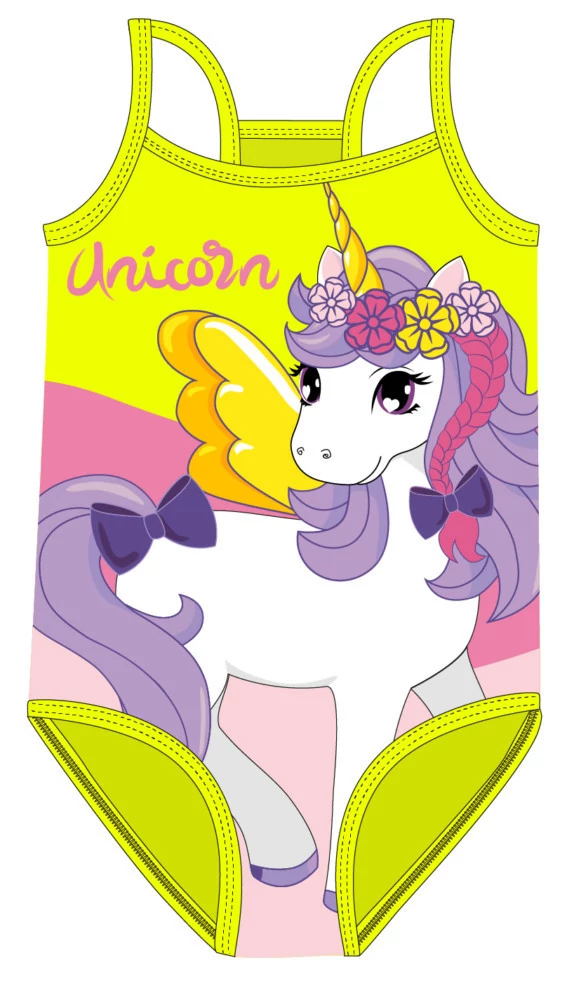 Egyrészes fürdőruha kislányoknak Unikornis mintával, a nyár elengedhetetlen kelléke. Kellemes viselet strandoláshoz, vízparti időtöltéshez.