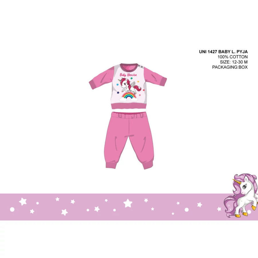 Unikornis jersey baba pizsama 100% pamut alapanyagból. Kényelmes bőrbarát viselet. A termék díszdobozban kapható.