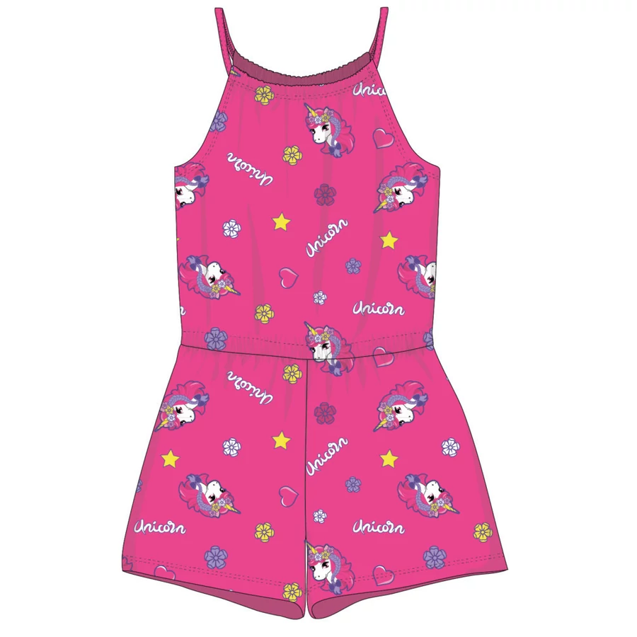 Unikornis nyári overál kislányoknak 100% pamut alapanyagból. Derék részen gumírozott, kényelmes, bőrbarát viselet.