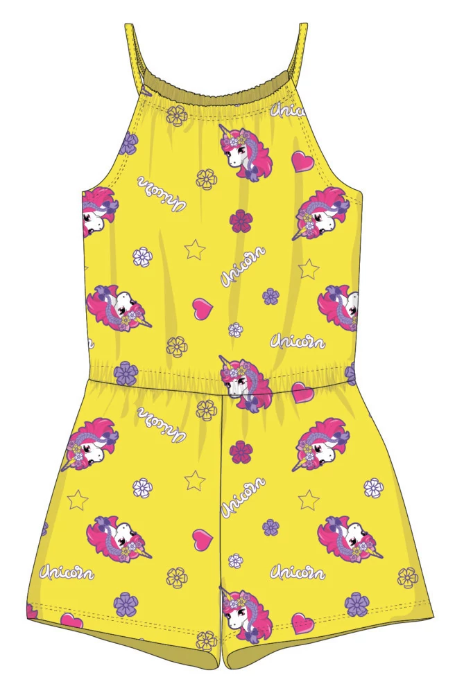 Unikornis nyári overál kislányoknak 100% pamut alapanyagból. Derék részen gumírozott, kényelmes, bőrbarát viselet.