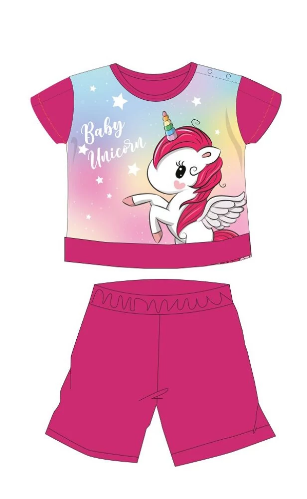 Unikornis nyári jersey pizsama kislányoknak 100% pamut alapanyagból, gombos vállrésszel. Kényelmes, bőrbarát viselet. A termék díszdobozban kapható.