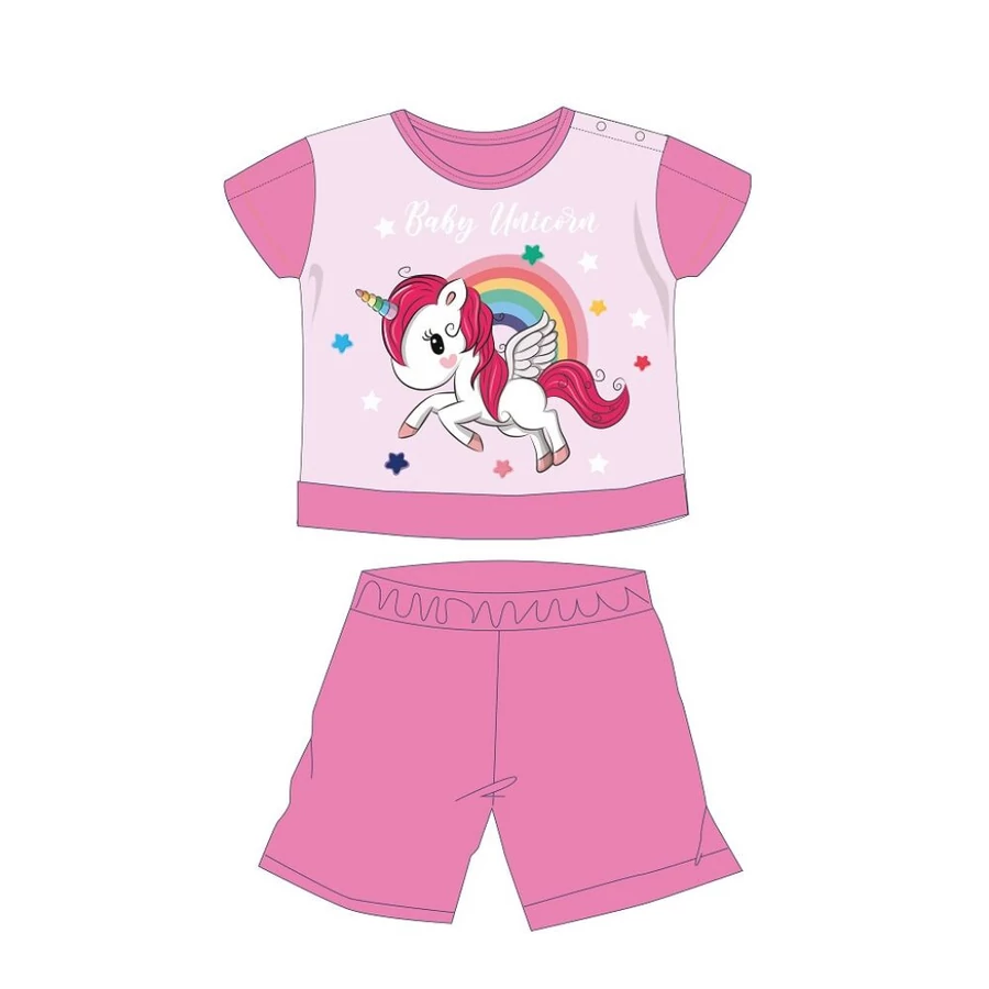 Unikornis nyári rövid ujjú baba pizsama - pamut jersey pizsama - rózsaszín - 80