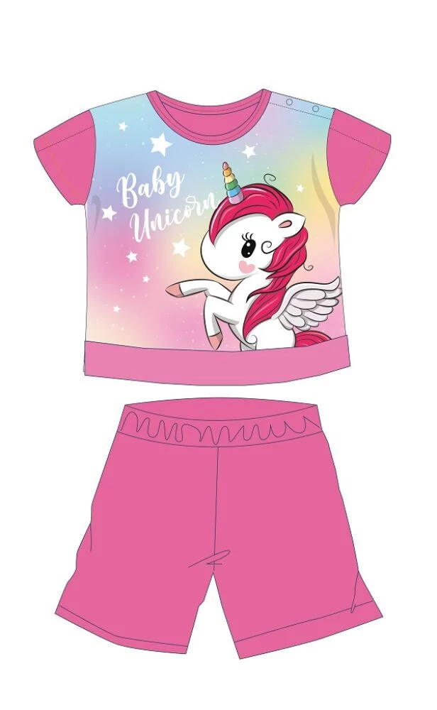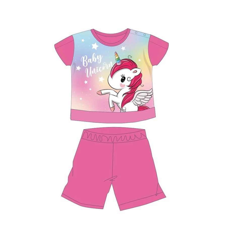 Unikornis nyári rövid ujjú baba pizsama - pamut jersey pizsama - sötétrózsaszín - 86