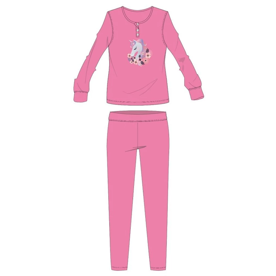 Unikornis pamut flanel pizsama - téli vastag gyerek pizsama - rózsaszín - 128