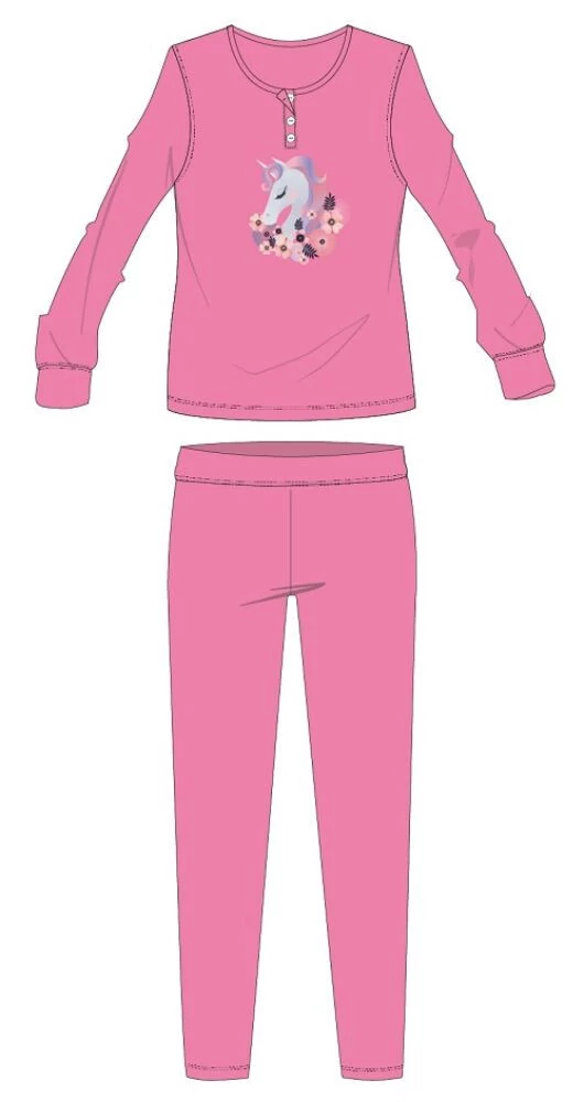 Unikornis pamut flanel pizsama - téli vastag gyerek pizsama - rózsaszín - 98