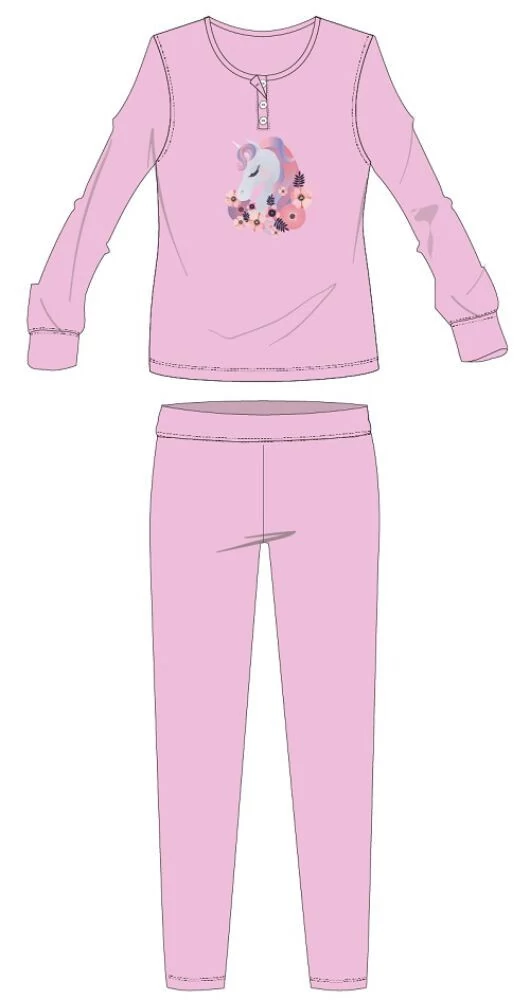 Unikornis pamut flanel pizsama - téli vastag gyerek pizsama - világosrózsaszín - 134-140