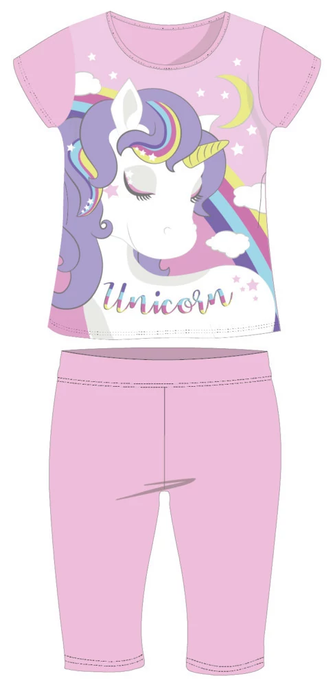 Unikornis nyári jersey pizsama kislányoknak 100% pamut alapanyagból, gombos nyakkialakítással, gumírozott derékrésszel. Kényelmes, bőrbarát viselet.