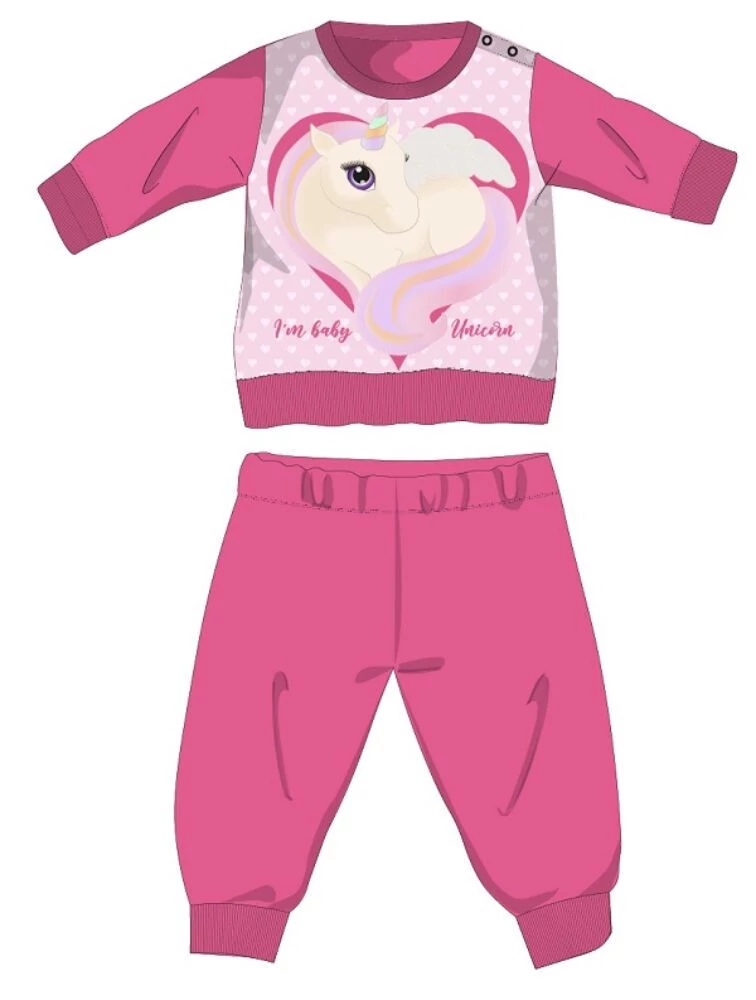 Unikornis téli pamut baba pizsama - interlock pizsama - pink - 92