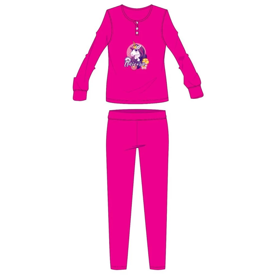 Unikornis téli pamut gyerek pizsama - interlock pizsama - pink - 116
