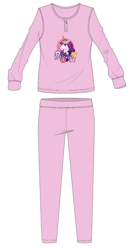 Unikornis téli pamut gyerek pizsama - interlock pizsama - világosrózsaszín - 134-140