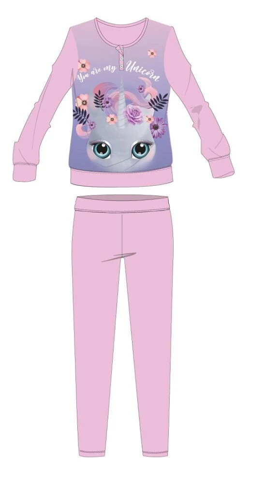 Unikornis téli pamut gyerek pizsama - interlock pizsama - You are my Unicorn felirattal - világosrózsaszín - 122