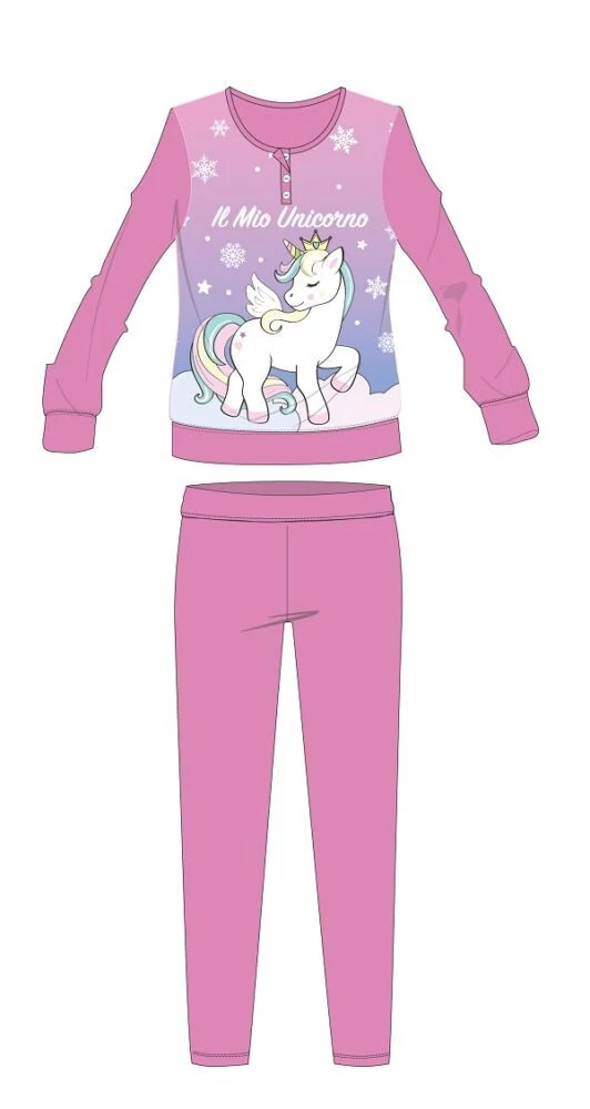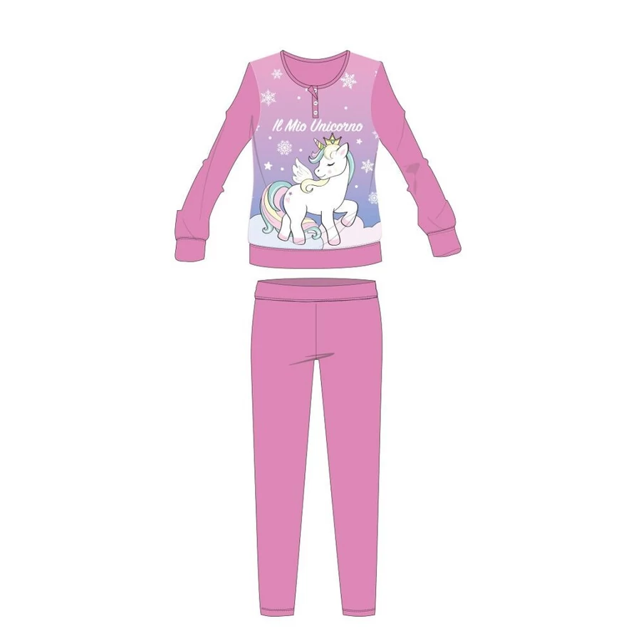 Unikornis gyerek flanel pizsama 100% pamut alapanyagból. Kényelmes, bőrbarát viselet. Belül pihe-puha bolyhos felületű. Díszdobozban szállítjuk.