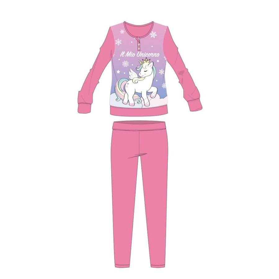 Unikornis téli vastag gyerek pizsama - pamut flanel pizsama - rózsaszín - 134-140