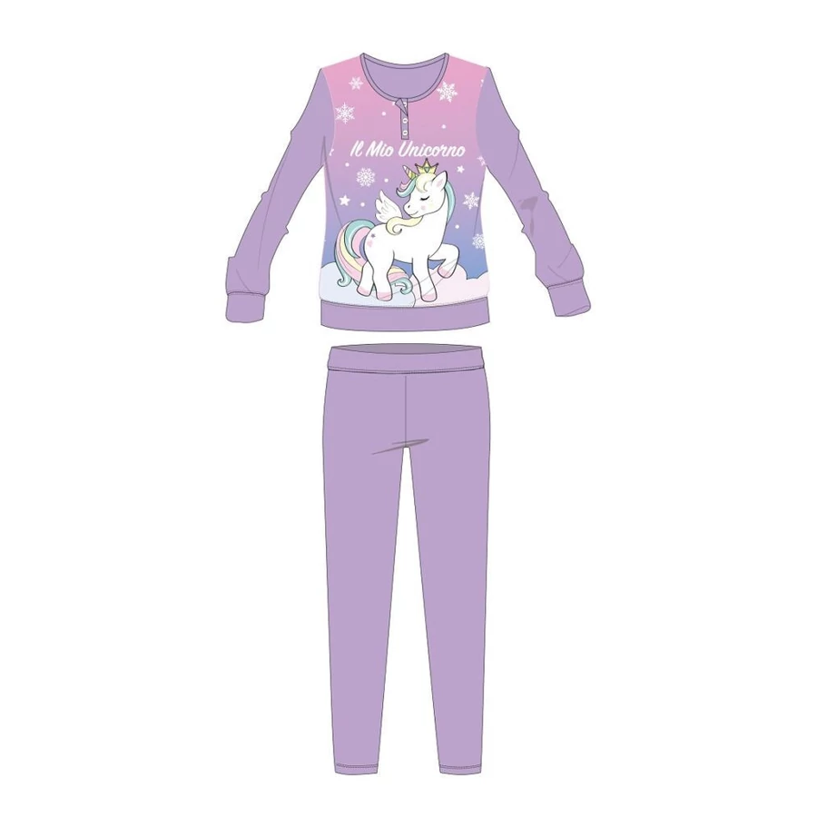 Unikornis téli vastag gyerek pizsama - pamut flanel pizsama - világoslila - 122