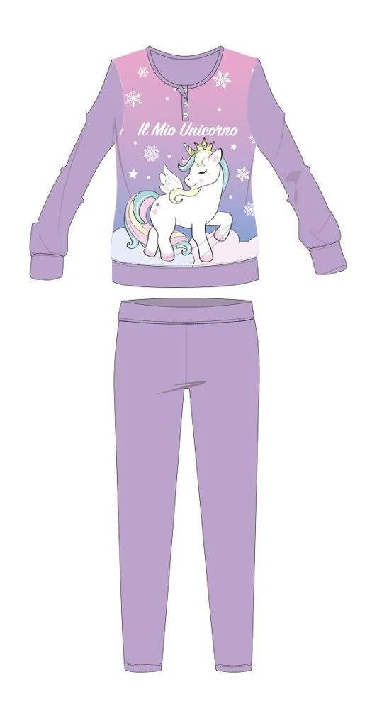 Unikornis téli vastag gyerek pizsama - pamut flanel pizsama - világoslila - 98