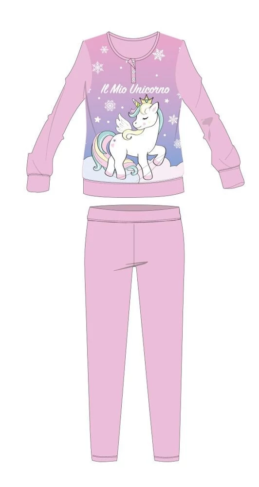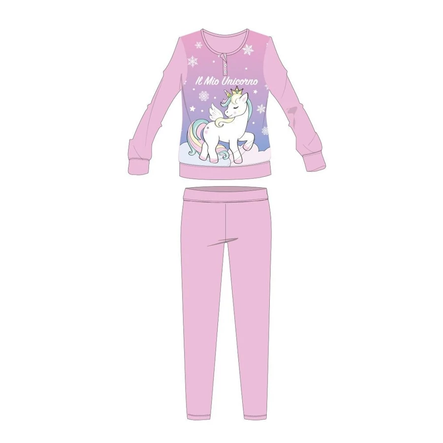 Unikornis téli vastag gyerek pizsama - pamut flanel pizsama - világosrózsaszín - 104
