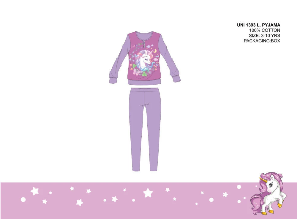Unikornis vékony pamut gyerek pizsama - jersey pizsama - lila - 122