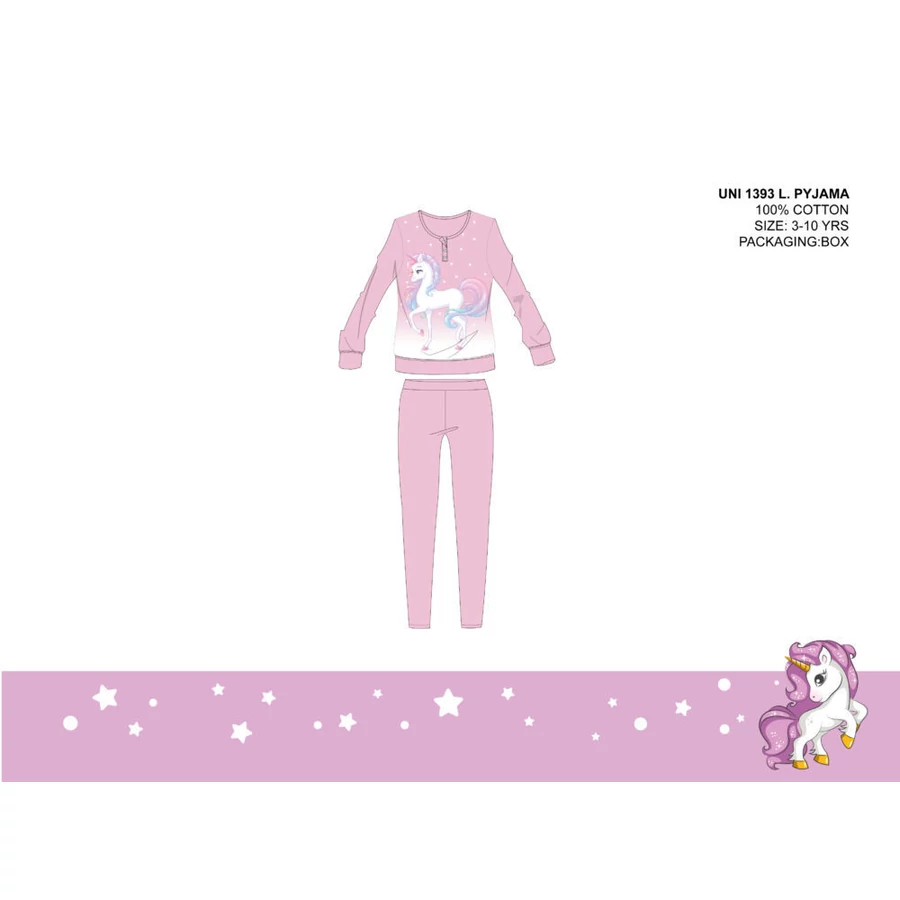 Unikornis vékony pamut gyerek pizsama - jersey pizsama - világosrózsaszín - 104