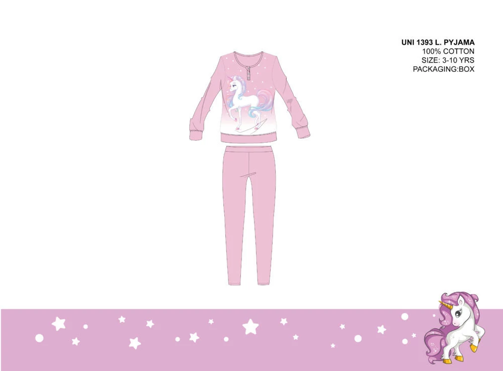 Unikornis vékony pamut gyerek pizsama - jersey pizsama - világosrózsaszín - 122