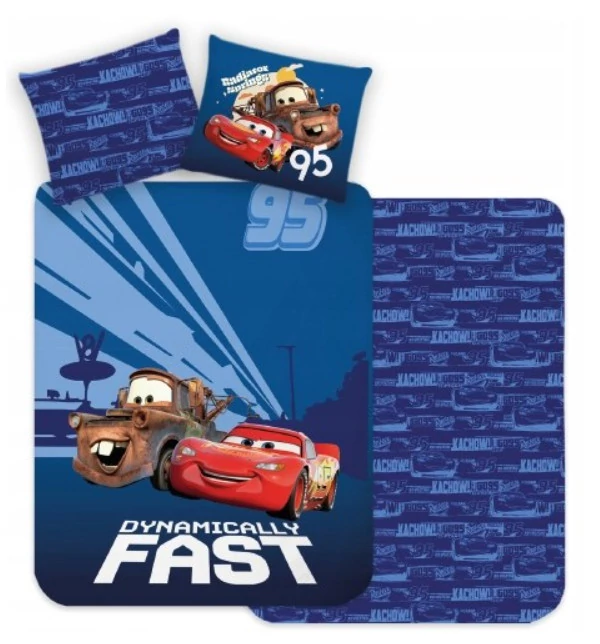 A Verdák Villám McQueen és Matuka 100% pamut ágyneműgarnitúra 140x200cm ágyneműhuzat + 70x90cm párnahuzat 100% pamut anyagból készült, 140x200 cm-es paplanhuzattal és 70x90 cm-es párnahuzattal, puha tapintással és látványos mintával, hogy stílusosabb legyen a hálószoba.